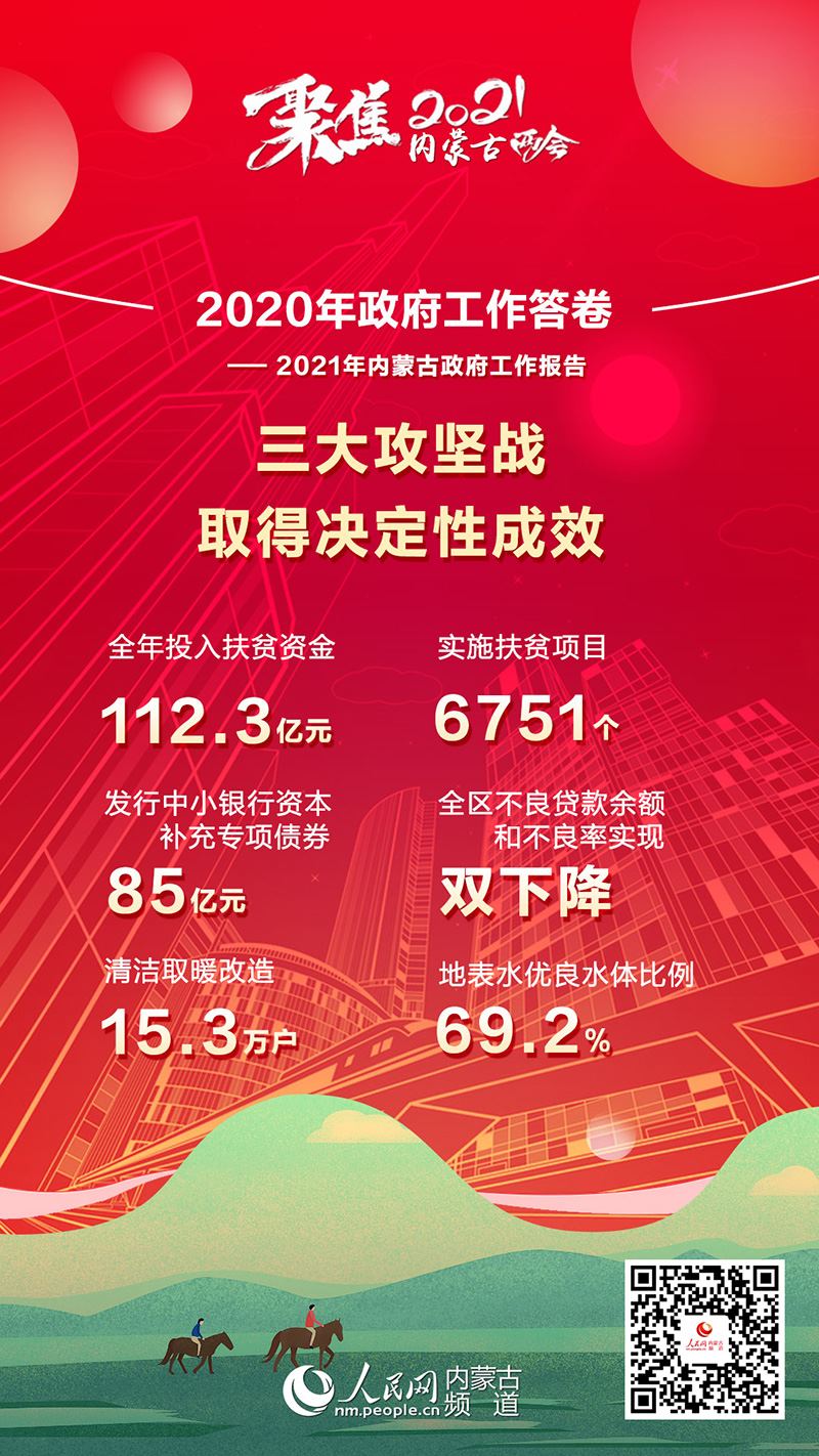 1月26日上午,內(nèi)蒙古自治區(qū)十三屆人大四次會(huì)議在內(nèi)蒙古人民會(huì)堂開(kāi)幕。自治區(qū)主席布小林作政府工作報(bào)告。2020年是極不平凡的一年,內(nèi)蒙古緊扣全面建成小康社會(huì)目標(biāo)任務(wù),堅(jiān)持穩(wěn)中求進(jìn)工作總基調(diào),堅(jiān)持以人民為中心,科學(xué)統(tǒng)籌疫情防控和經(jīng)濟(jì)社會(huì)發(fā)展,扎實(shí)做好“六穩(wěn)”工作,全面落實(shí)“六保”任務(wù),全區(qū)經(jīng)濟(jì)持續(xù)回穩(wěn),社會(huì)大局和諧穩(wěn)定,“十三五”規(guī)劃順利收官。2020年政府工作有哪些亮點(diǎn)?看內(nèi)蒙古書(shū)寫(xiě)這份精彩答卷!