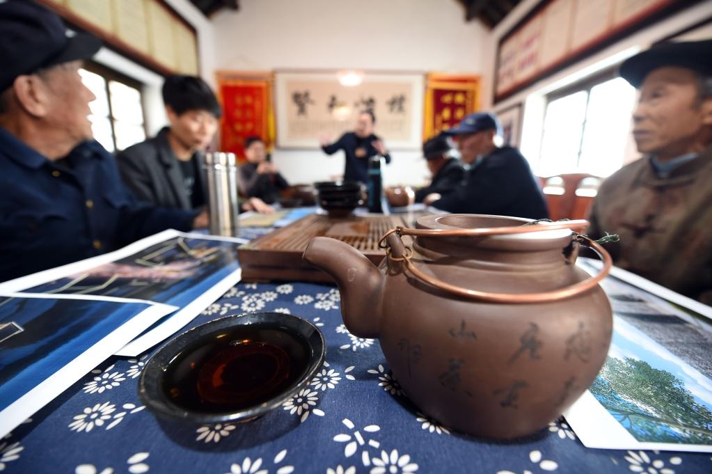 古樸的茶館里,老茶客劉進(jìn)華與幾位鄉(xiāng)親圍坐桌旁,商量著在人大代表接待日提出一個(gè)建議——修建公廁,既方便游客,也提升小鎮(zhèn)形象。