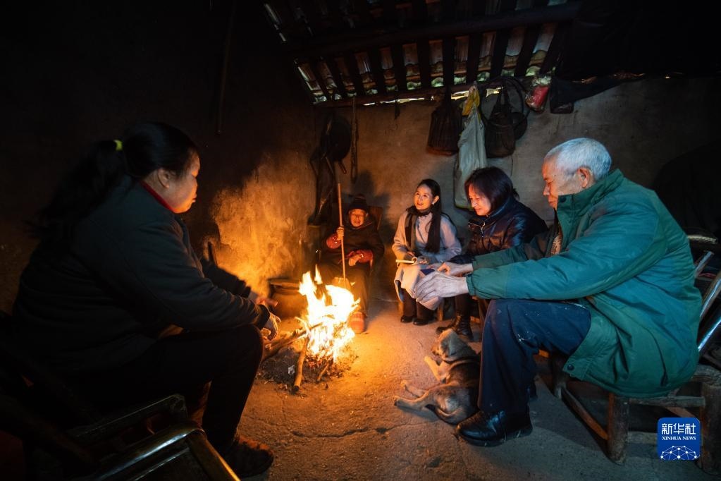 在湖南省常德市鼎城區(qū)草坪鎮(zhèn)楓林口村,全國(guó)人大代表杜美霜(右三)入戶與當(dāng)?shù)卮迕窠涣?2月16日攝)。新華社記者 陳思汗 攝