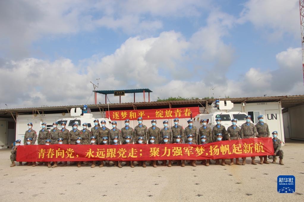 “我宣誓:忠于黨,忠于社會主義,忠于祖國,忠于人民……揚藍盔精神,展大國形象,為祖國爭光,為軍旗添彩?!敝袊伯a(chǎn)主義青年團成立100周年之際,在黎巴嫩南部提爾市沙馬村的中國維和營區(qū),中國第20批赴黎巴嫩維和建筑工兵分隊的官兵們頭戴貝雷帽,身穿配有五星紅旗臂章的星空迷彩服,擺成數(shù)字“100”的隊形,面向國旗和聯(lián)合國旗莊嚴宣誓。