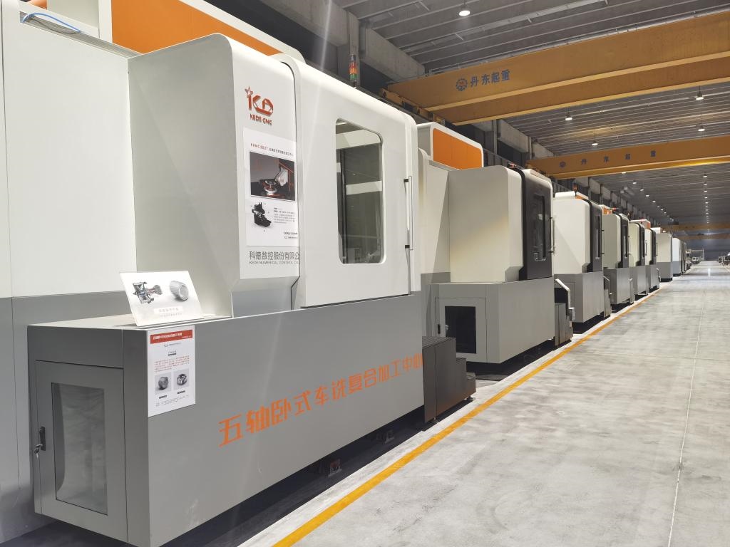 在大連光洋科技集團(tuán)25萬平方米恒溫恒濕地藏式生產(chǎn)車間,一臺(tái)臺(tái)“大塊頭”高端機(jī)床整齊排列,其中,一臺(tái)5米多高的高端五軸臥式車銑復(fù)合加工中心,十分引人注目。